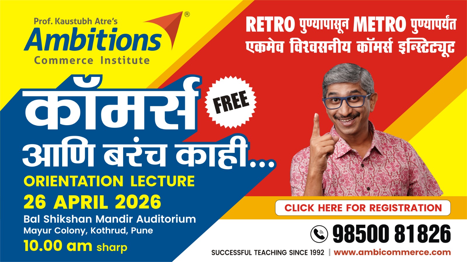 Ambitions Commerce Institute was established by Prof. Kaustubh Atre on 17th October 2001 on the auspicious day of Ghatasthapana. We provide private tuitions for a curriculum of Commerce, French and German at 3 Branches – Karve Road, Kothrud and Sinhgad Road.